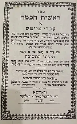 Книга основана на изречениях из Зогар, Мидрашах и Талмуда. Название взято из стиха в Техилим (Пс. 110:10 «Начало мудрости — страх Господень…»). Книга получила широкое распространение в Восточной Европе.