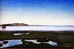 Вид морского берега в Эно с фургоном и палаткой художника.