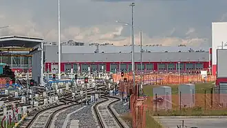 - 17 октября 2016 года — объект представляет собой активную стройплощадку с большим количеством техники и почти готовыми зданиями депо.