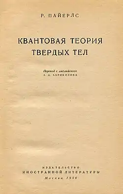 - Р. Пайерлс. [djvuru.512.com1.ru:8073/WWW/c257d943b0293dab3de40cbec5566e64.djvu Квантовая теория твердых тел.] — М.: Изд-во иностр. лит-ры, 1956.