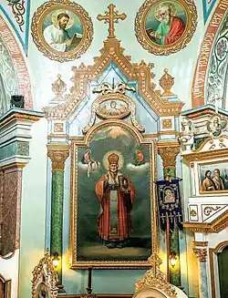 Кроме того, в храме сохранились исторические иконы и предметы религиозного культа: парные иконы Спасителя и Богородицы (XIX в.), Икона Божией Матери Неопалимой Купины (50-е годы XX в.), икона Господа Вседержителя, икона Святителя Николая Чудотворца, икона Святого Василия Великого, икона преподобного Антония Дымского с частицей мощей, икона священномученика Владимира (Богоявленского) — Митрополита Киевского и Галицкого с частицей мощей, икона преподобных Онуфрия Великого и Петра Афонского с частицами мощей, икона преподобного Арсения Коневского с частицей мощей, иконы преподобного Иова Почаевского и Федора князя Острожского, Икона Великомученика Димитрия Солунского, старинный антиминс (1794 г.) и Святые Плащаницы (XIX и XX вв.).