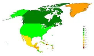 Ожидаемая продолжительность жизни в Северной Америке в 2019 и 2021 годах
