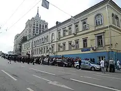 Сотни людей пришли в день ареста, 23 августа 2017 года, к зданию Басманного суда[45]