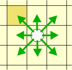 • Камень ходит в любом направлении (в том числе и по диагонали) на одну клетку, если она свободна.