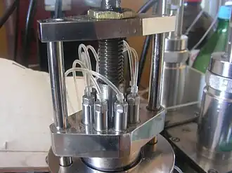 В настоящее время твердофазный синтез проводится автоматически в олигонуклеотидных синтезаторах, управляемых компьютерами. Данные приборы состоят из серии клапанов, соединённых с ёмкостями для реагентов, а также соленоидами, которые открывают или закрывают тот или иной клапан. В свою очередь, соленоиды управляются компьютером, выполняющим программу синтеза. Когда клапан открыт, через колонку, содержащую твердофазный носитель, в течение времени, задаваемого программой, прокачивается определённый реагент. Время и последовательность подачи реагентов постоянны для каждого синтетического цикла; переменным является лишь мономерный реагент, который должен конденсироваться в данном цикле. Его выбор также производится программой в соответствии с заданной олигонуклеотидной последовательностью[77].