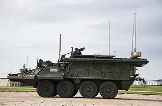 Комплекс активной защиты Iron Curtain на Страйкере.
