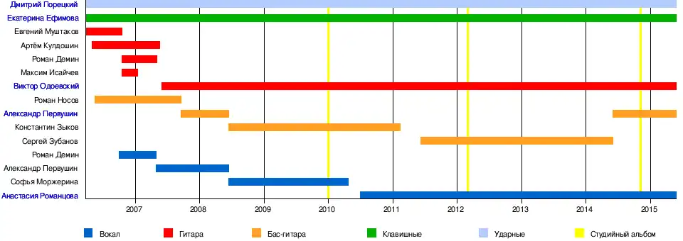 21 апреля 2010 года из-за личных обстоятельств группу покинула вокалистка Софья Моржерина. На её место была приглашена сессионная вокалистка Людмила Книревич. А в июле на место постоянной вокалистки была принята Анастасия Романцова, ранее выступавшая в татищевской группе «Вместе» и вокальном квартете «Loris-Band».