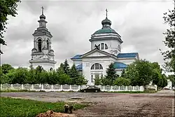 • Ансамбль церкви Рождества Пресвятой Богородицы: церковь (фрески в интерьере церкви), звонница, церковно-приходская школа (ул.Ленинская, 9 (инв. № 734/С-15967); фундамент тёплой церкви[38]; бывший жилой дом (ул.Ленинская, 9/1 (инв. № 734/С-16058); фрагменты бывшего жилого дома — Знак «Историко-культурная ценность» Историко-культурная ценность Республики Беларусь, . Построена в 1791—1793 гг. князем Алексеем Михайловичем Голицыным в стиле классицизма. Интерьер украшен иконостасом, живописью и великолепными фресками, в которых изначально насчитывалось 57 сюжетов Ветхого и Нового Заветов[39]. Для участия в строительстве храма были приглашены знаменитые в то время русский архитектор Николай Львов и мастер-каменщик Лука Иванов. В росписи иконостаса и внутренних стен участвовали лучшие живописцы из Москвы. В числе писавших фрески художников был Владимир Боровиковский (автор портретов Павла I, Екатерины II и других именитых лиц Российской империи).