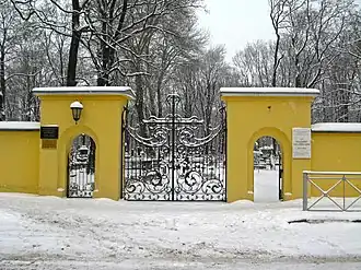 Интересны железные надгробия в виде саркофагов. Один из них прекрасно сохранился и принадлежит астроному и геодезисту Фёдору Ивановичу Шуберту, который в 1798 году стал автором первого в России курса теоретической астрономии, а другое, с масонской эмблемой глаза в треугольнике, находится в гораздо худшем состоянии и принадлежит Джону и Софии Бэйрд.