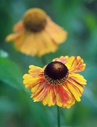 Цветки различных сортов гелениума имеют диапазон цветов от тёмно-красного до бледно-жёлтого, лепестки могут быть окрашены однотонно, а могут меть смешанный цвет, различные вкрапления цветов и переходы. Высота от 30 см до более чем 150 см. Цветение в зависимости от сорта, с конца июня до конца октября.