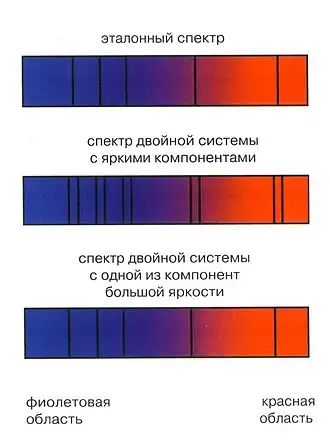 Спектрально-двойной называют систему двойных звёзд, если двойственность обнаруживается при помощи спектральных наблюдений. Обычно это системы, у которых скорости компонентов достаточно велики, а расположены они настолько близко, что увидеть их раздельно с использованием современных телескопов невозможно. В результате орбитального движения звёзд вокруг центра масс одна из них приближается к нам, а другая от нас удаляется, их лучевые скорости (вдоль направления на наблюдателя) неодинаковы и, как следствие эффекта Доплера, это приводит к сдвигу спектральных линий одной звезды относительно другой. Поэтому на спектрах двойных звёзд наблюдается расщепление спектральных линий. У приближающейся звёзды они смещены к фиолетовому краю спектра, у удаляющейся — к красному. Периодическое изменение лучевой скорости приводит и к периодическому изменению сдвигов соответствующих линий.