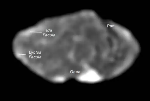 | Факула Ида | Ida Facula[2] | 17° с. ш. 174° з. д. / 17° с. ш. 174° з. д. | 50 | 1979 | Гора Ида, на которой в детстве играл Зевс |