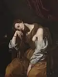 | 20 | ![]() | Maria Maddalena in estasi | Мария Магдалина в экстазе | 1613-1620 | 81 × 105 см; масло, холст | Частное собрание | Эксперты аукционного дома Sotheby's дают более раннюю датировку картины (ок. 1611)[10], считая, в том числе, что она, возможно, является и автопортретом художницы |