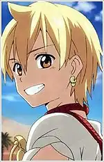 - Главный герой истории. Ему 17 лет. Вырос в трущобах Балбадда с матерью-проституткой, которая рано умерла от болезни. Позже выяснилось, что он является незаконнорождённым сыном султана Балбадда — Рашида, который после смерти матери Алибабы забрал его во дворец, чтобы сделать законным наследником (поскольку законные сыновья не обладают нужными качествами будущих правителей). Во дворце Алибабу обучали различным знаниям, необходимым для правителя — политике, чтению на арабском языке, но лучше всего он научился языку племени Торан, (шумерской клинописи), фехтованию и экономике. К несчастью Алибабы, его давний друг Касим стал главой банды разбойников и обворовал дворец, устроив во время этого пожар. После этого (одновременно умер и его отец) Алибаба сбежал в соседнее государство и попал в армию оазиса, чтобы скопить денег, а позже устроился работать на купца-винодела (извозчиком). Тогда же он встретил Аладдина. После прохождения подземелья джинна Алибаба возвращается в Балбадд и из чувства солидарности вступает в банду Касима. Позже Алибаба при поддержке Синдбада, Аладдина и Морджаны пытается остановить своего брата Абмада — султана, который почти разрушил экономику Балбадда, Алибаба устраивает дворцовый переворот, заявив о создании республики и прекращении существования монархии. Однако из-за того, что в Балбадд направляется флотилия империи Ко, Синдбад отправляет Алибабу в Синдорию. В Балбадде (в аниме) змея, появившаяся из головы убитого Иснана, кусает Алибабу, заражая проклятием, а затем от него проклятием заражается и Синдбад; в манге проклятие перешло от укушенного Хакурю после битвы в лабиринте Загана. Постепенно чёрная метка начинает распространяться и (в аниме) в лабиринте Загана Алибаба перерождается с чёрной Рух. С помощью Аладдина он сумел преодолеть чёрную Рух. Позже, в манге, Алибаба отправляется в Рем, чтобы обучаться боевым навыкам у гладиаторов. Во время битвы между Ремом и Магноштадтом Алибаба демонстрирует полное подчинение джинна. Позже Алибаба возвращается в Багбадд, где узнаёт, что Ко проводит политику этноцида, Коэн Рэн предлагает ему стать генералом империи Ко, в обмен Алибаба сможет править Багбаддом. Алибаба вынужден пойти на соглашение, и разорвать связь с Синдрией. Критик сайта kotaku.com отметил неопределённость его роли в этом мире[1].