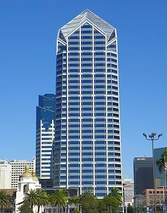 | 1 | One America Plaza | ![]() | 152 | 34 | 1991 | 32°42′57″ с. ш. 117°10′07″ з. д. | Высочайшее здание в городе; Высочайшее здание построенное в 1990-х[3][7] |