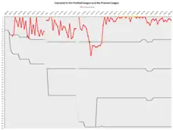 Е. ↑ «Ливерпуль» был повышен в классе после двух побед и одной ничьи в четырёх матчах плей-офф, в которых сыграл против Смолл Хит и Вест Бромвич Альбион.