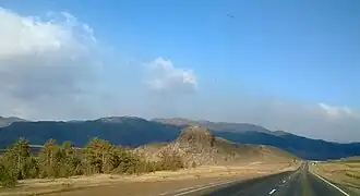 Второе название гора приобрела из-за своего внешнего вида. Её очертания очень похожи на льва, который смотрит в сторону села Тарбагатай. Если вглядеться в скалу, можно увидеть, что его гриву составляют каменные выступы, тело — это плавный склон, покрытый редкими растениями, а хвост — дорога, лежащая у подножия горы.