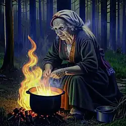 Алевипоэг интересуется у старой бабы, что она варит[3].
