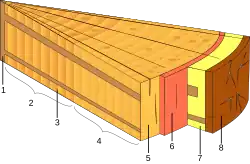 Ствол состоит из 5 слоёв: сердцевины, древесины, камбия, луба и коры.
