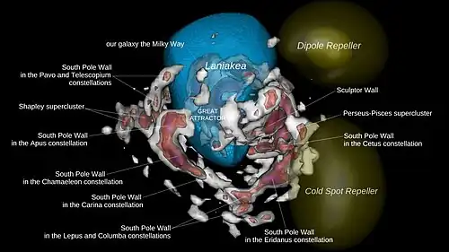 - ↑ Daniel Pomarède, R. Brent Tully, Romain Graziani, Hélène M. Courtois, Yehuda Hoffman, and Jérémy Lezmy; (Опубликовано 10 июля 2020 года). «Cosmicflows-3: The South Pole Wall». The Astrophysical Journal. 897 (2). doi:10.3847/1538-4357/ab9952. Архивная копия от 9 августа 2020 на Wayback Machine