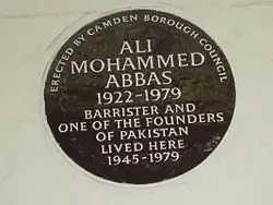 - Местные власти Камдена отметили мемориальной доской и место, связанное с именем видного деятеля движения за создание независимого Пакистана и организатора школ в Англии для обучения пакистанских детей английскому языку юриста Али Мохаммеда Аббаса[9]; он приехал в Лондон учиться правоведению, был в последние колониальные членом Всеиндийской лиги мусульман и редактировал два пакистанских издания, а после обретения независимости Пакистана в его квартире было первое, еще неофициальное посольство этой страны в Великобритании.
