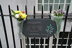 - табличка с именами погибших на ограде здания Британской медицинской ассоциации.