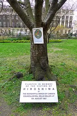 - Вишневое дерево (сакура), посаженное в 1967г. в память жертв атомных бомбардировок в конце Второй мировой войны японских городов Хиросимы и Нагасаки;[5]