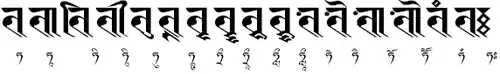 Буква «та» шрифтом ранджана: