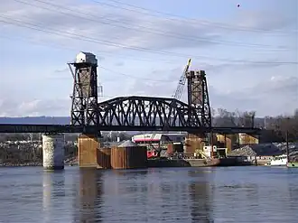 Первый железнодорожный мост представлял собой конструкцию с центральным шарниром был построен около 1879—1880 годах. Размах поворотной конструкции составлял проблему для проведения навигации, что вызвало необходимость в его перестройке. В 1917 году он был заменён на вертикальный подъёмный пролёт, но подъёмные башни и механизмы не были установлены вплоть до 1920 года. Он остаётся очень загруженным в направлениях на Цинциннати[1], Новом Орлеане и Техасской тихоокеанской железной дороге, крупной дочерней компании Южной железной дороги Норфолка. Мост имеет два пути для движения через реку[2].