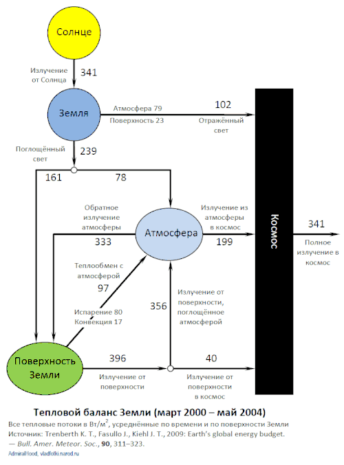 - 1 2 3 4 5 Kevin E. Trenberth, John T. Fasullo, and Jeffrey Kiehl, March 2009: Earth’s global energy budget Архивная копия от 16 июля 2019 на Wayback Machine. — Bulletin of the American Meteorological Society, 90, 311–323.