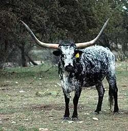 Техасские лонгхорны являются потомками первого крупного рогатого скота, привезённого Христофором Колумбом и испанскими колонистами в Новый Свет. Они имеют высокую толерантность к засухе. Техасские лонгхорны известны своей разнообразной окраской и могут быть любого цвета и сочетания цветов; наиболее известное из них — сочетание тёмно-красного с белым цветом.