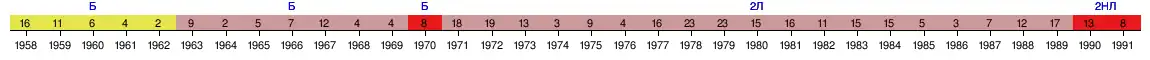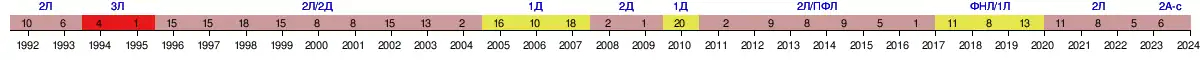 | 1994 | Третья лига, 2-я зона | 4 | 32 | 19 | 4 | 9 | 51−39 | 42 | 1/128 |
