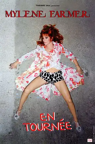 Постер тура, впервые показанный в Интернете и затем использованный для афиш в Париже, вызвал неоднозначную реакцию. На этом постере Фармер лежит на земле с безумными глазами, будто её только что выбросили из окна. В результате некоторые СМИ раскритиковали этот постер как побуждающий к суициду.[21][22][23][24][25] Другие СМИ утверждали, что он имеет отношение к убийству или изнасилованию, а возможно, и прощанию певицы со своими поклонниками.[26] Другие рассматривали его как удачный коммерческий ход, привлекающий внимание публики.[27] Постер был предметом дискуссии между фанатами Милен Фармер и критиками в Интернете.[28]