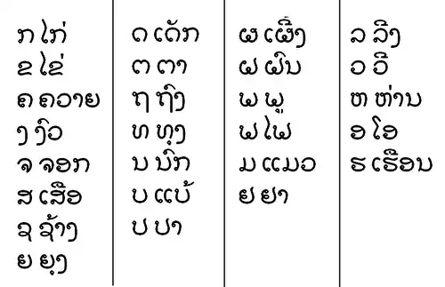 Лаосский тхотхунг объединяет собой лексику четырех букв тайского алфавита: тхомонтхо (Мондодари) — ฑ (частично), тхопхутхау (старик) — ฒ, тхотахан (солдат) — ท и тхотхонг (флаг) — ธ.