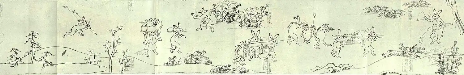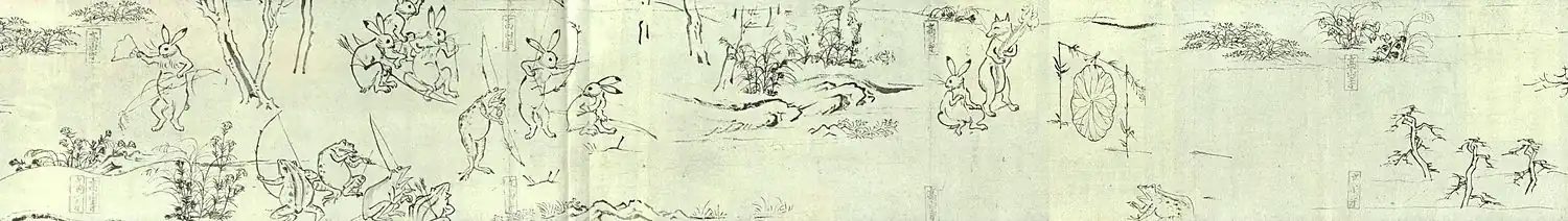- ↑ The «Frolicking Animals and Figures» Scroll (англ.). Miho Museum. Дата обращения: 22 января 2009. Архивировано 4 апреля 2012 года.