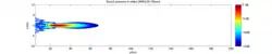 Диаграмма луча преобразователя может определяться активной площадью и формой преобразователя, длиной волны ультразвука и скоростью звука в среде распространения. На диаграммах показаны звуковые поля несфокусированного и фокусирующего ультразвукового преобразователя в воде, явно на разных энергетических уровнях.