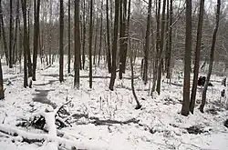 В результате засыпки строительным мусором части русла Зимёнки, в 2007 году на территории 49, 50 и 52 кварталов образовалась заводь, заполнившая лесной овраг. Около ста деревьев, оказавшись в воде, засохли. Со временем заводь заселилась растениями и животными, приобретя признаки естественного биотопа[3].