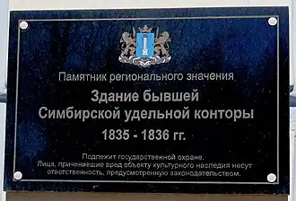 Бывшее здание Присутственных мест, ныне Ульяновская государственная сельскохозяйственная академия.- Мемориальная доска на здании колледжа.