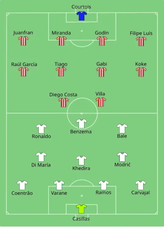 30 апреля 2014 года «Атлетико Мадрид» оформил путевку в финал Лиги Чемпионов, обыграв лондонский «Челси» в ответном матче полуфинала на Стэмфорд Бридж со счетом 3:1. В первой игре соперники голов друг другу не забили. На протяжении всего турнира, «Атлетико» не потерпел ни одного поражения, лишь трижды сыграв вничью. В финале Атлетико уступил более именитому соседу по городу, мадридскому Реалу со счетом 4:1 в дополнительное время, основное время завершилось вничью 1:1, на 36-й минуте за Атлетико отличился Диего Годин, на 3-й компенсированной минуте второго тайма Серхио Рамос счет сравнял. В дополнительное время Реал выиграл матч благодаря голам Гарета Бейла, Марсело и Криштиану Роналду.