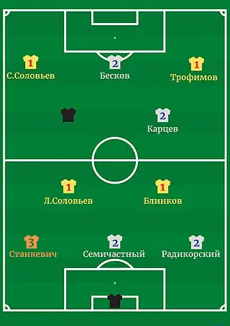 | «Динамо» Москва: Хомич (60' Медведев) - Радикорский, Семичастный «Динамо» Минск: Кочетов - Шевцов, Чернышев |