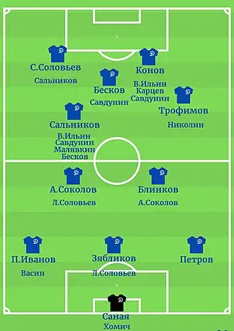 | «Динамо» Москва: Хомич - Петров, Зябликов, Иванов - Блинков, Соколов - Трофимов, Ильин, Бесков «Локомотив» Москва: В.Грачев - Антоневич |