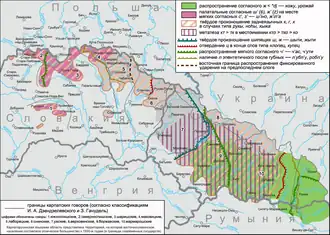 - ↑ Ванько Ю. I. Iсторічно-етноґрафічна і языкова основа. Класіфікація і головны знакы карпатьскых русиньскых діалектів // Русиньскый язык / Redaktor naukowy Paul Robert Magocsi. — Opole: Uniwersytet Opolski — Instytut filologii Polskiej, 2004. — С. 70, 73, 79. — 484 с. — (Najnowsze dzieje języków słowiańskich). — ISBN 83-86881-38-0. (русин.) (Дата обращения: 3 ноября 2022)