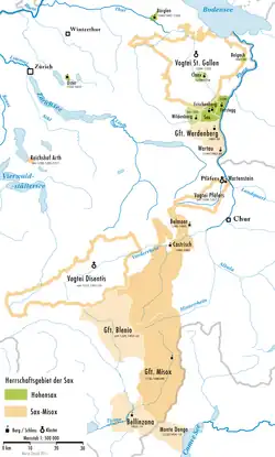 Его сыновья Ульрих и Генрих стали аббатом и фогтом в одноимённом аббатстве. Между 1208 и 1213 годами они стали фогтами над аббатствами Дисентис и Пфеферс, а в 1212 году поддержали Фридриха II в его борьбе за императорский титул и получили от него обширные земли и богатства. Чтобы защитить свои обширные владения, семья построила замок Кланкс в Аппенцелле, замок Гогенсакс в Зеннвальде, и замок в Мезокко.[1][2] В 1220 году они расширили свои южные владения до долин Левентина и Бленио[3]