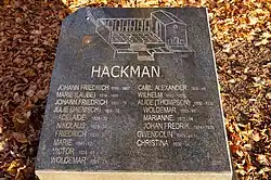 В период 2007—2010 гг. в рамках совместного российско-финского проекта «Мемориальный парк Сорвали — наше общее культурное наследие», на месте существовавшей ранее часовни, уничтоженной во время войны, был установлен памятный надгробный камень с именами погребенных в Выборге представителей рода, включая и Вильгельма Хакмана. На гранитной плите выбиты восемнадцать имён, представителей шести поколений семьи. На церемонии открытия памятника присутствовали пятеро представителей фамилии во главе с Карлом Фредериком Санделином.