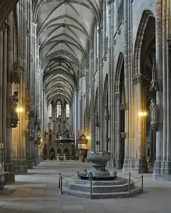 Возведение основного объёма кафедрального собора началось около 1260 года, причём размеры здания — по сравнению с изначальным планом — были значительно увеличены: так, центральный неф получил в высоту 27 метров, а боковые нефы — по 14 метров. Вероятным прототипом послужил Реймсский собор. Из-за постоянных проблем с финансированием к 1310 году удалось завершить лишь около половины запланированных работ, при этом в середине XIV века в восточной, алтарной части собора началось строительство нового хора и прилегающей обходной галереи (деамбулаторий), освящённых в 1401 году. В течение некоторого времени собор представлял собой очевидно причудливое смешение готической архитектуры (вестверк с частью центрального нефа и хор) с оттоновской (центральная часть здания). Наконец, к 1491 году был завершён центральный проём и был возведён трансепт; в 1514 году было закончено новое здание конвента для соборного капитула.