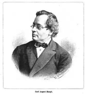 1. 1 2 3 Eitner R. Haupt, Karl August (нем.) // Allgemeine Deutsche Biographie — Leipzig: 1905. — Vol. 50. — S. 74.