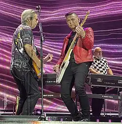 Андерс Херрлин (на фото в центре) в составе Gyllene Tider на концерте в Хальмстаде в рамках Hux flux sommarturné 7 июля 2023 года