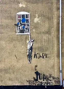 - ↑ Banksy- Britain: lover hanging on a window sill. The Guardian (17 сентября 2006). Дата обращения: 15 августа 2019. Архивировано 29 июля 2020 года.