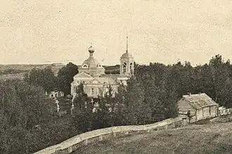 Имел два придела: в честь Архангела Михаила, построенный на средства купца Ивана Игнатиевича Ксюнина в 1850 году, и в честь Владимирской иконы Божией Матери, построенный купцом Василием Зимицким в 1859 году. Храм был обнесён каменной оградой, по углам которой находились башни[1][2].