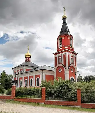 Церковь является[19] типовой одноглавой, построенной в русском стиле с трапезной и колокольней. В трапезной приделы — в честь Боголюбивой («Боголюбской») иконы Божией Матери и во имя благоверного великого князя Александра Невского.